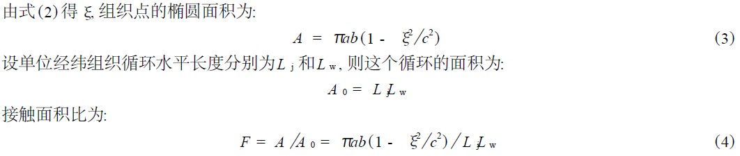 織物在自然狀態(tài)下, 支持面表現(xiàn)為離散的點(diǎn)。隨印花壓力的增大支持點(diǎn)數(shù)逐漸減少而成為面接觸。由于孔洞的存在, 此時的接觸面積小于織物的總面積。由文獻(xiàn)[6 ]可知, 織物單元組織點(diǎn)的面積標(biāo)準(zhǔn)式為: