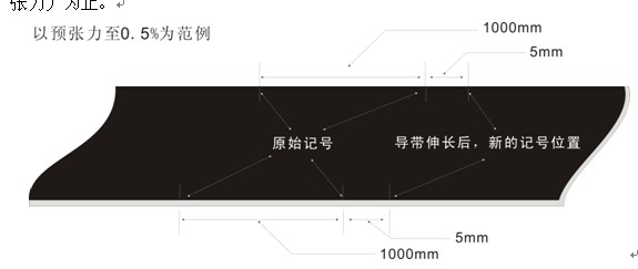 施予預(yù)張緊力的作法:在導(dǎo)帶對等的兩側(cè)邊緣取1000mm,做兩個精密的記號,開始必須沒有張緊,然后使用機臺的張力設(shè)備延伸印花導(dǎo)帶,待達(dá)到所要求的延伸比率(預(yù)張力)為止。