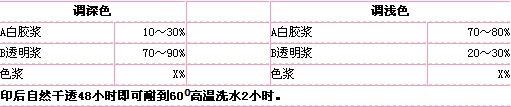 A白膠漿和B透明漿互配使用時(shí),B透明漿比例越多印出來(lái)的手感越軟。