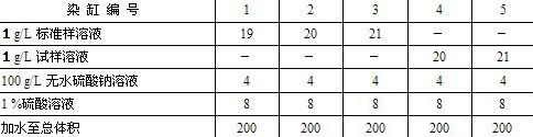 4.檢驗(yàn)結(jié)果強(qiáng)度評(píng)定:目測(cè)評(píng)定染色強(qiáng)度是以標(biāo)準(zhǔn)樣品和試樣染得相等深度顏色時(shí),染料標(biāo)次樣品與試樣用量的質(zhì)量分?jǐn)?shù)表示。其測(cè)定結(jié)果應(yīng)在100%±5%(不含5%)范圍內(nèi)。