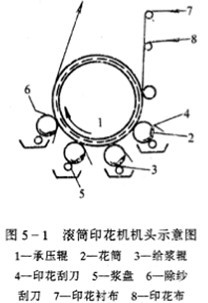 滾筒印花機----凸紋印花機(印章式)和凹紋印花機。 凹紋滾筒印花機:
