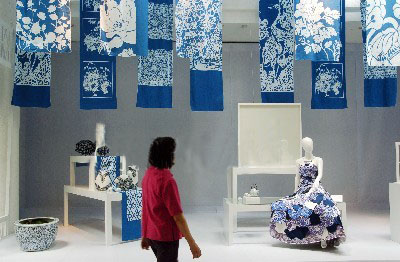 【集萃網(wǎng)觀察】6月11日,觀眾在浙江杭州中國絲綢博物館參觀藍(lán)印花系列工藝產(chǎn)品。當(dāng)日,為迎接我國第五個“文化遺產(chǎn)日”,杭州中國絲綢博物館舉辦《藍(lán)白藝術(shù)展覽》,展出我國三大傳統(tǒng)印花技藝——蠟染,扎染,藍(lán)印花等系列傳統(tǒng)工藝產(chǎn)品。