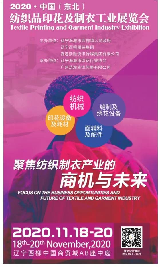 為推動西柳乃至整個北方服裝制衣市場與行業(yè)間更緊密交流與合作,助力行業(yè)同仁更好地把握市場風向,了解行業(yè)現(xiàn)狀,締造商機,業(yè)內(nèi)頗具規(guī)模的新星崛起——2020中國(東北)國際紡織品印花及制衣工業(yè)展暨2020中國海城(西柳)服裝印花發(fā)展技術(shù)論壇,將于11月18日—20日在遼寧省海城市西柳鎮(zhèn)中國服裝商貿(mào)城AB座中庭舉行。
