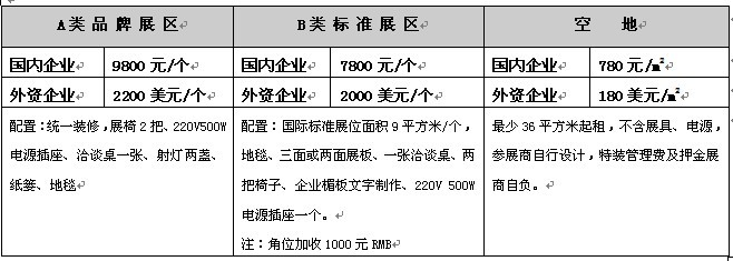 注:角位加收1000元RMB 最少36平方米起租,不含展具、電源,參展商自行設(shè)計,特裝管理費及押金展商自負。