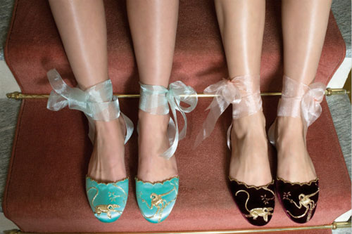 區(qū)別于Celine等品牌的簡潔設(shè)計,Liudmila的風格著實出位,這也是它最大的賣點。雖然它繁雜得缺少細節(jié),復古中又鮮有創(chuàng)新,配色也很傳統(tǒng),不過不否認一定會有小公舉們特別喜歡。起碼這兩雙猴子遇上老鼠的平底鞋還是很可愛的,像是圓了一個戲謔少女的芭蕾夢。