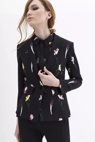 黑色點綴蘭花圖案,寶姿秋冬系列延續(xù)春夏印花風潮,將摩登且充滿女性柔美的一面全然展現。