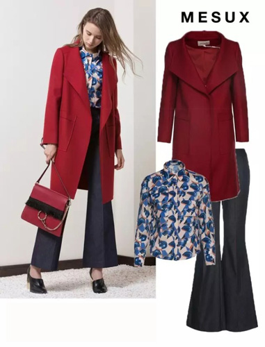采用強(qiáng)捻緯紗,表面有細(xì)微均勻的肌理,質(zhì)感輕柔,穿著舒適涼爽。碰撞極具軍裝特點(diǎn)的四個(gè)大口袋設(shè)計(jì),更增加一層視覺的沖擊力。下身一條復(fù)古牛仔喇叭長(zhǎng)褲,外搭棉羊毛刀剪針織呢面料的大衣,簡(jiǎn)潔實(shí)用更時(shí)髦的大口袋設(shè)計(jì),大氣隨性。