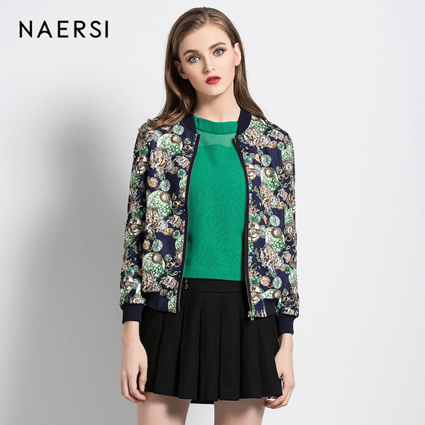 NAERSI/娜爾思2017春裝新款 印花棒球服女寬松大碼短外套夾克開衫