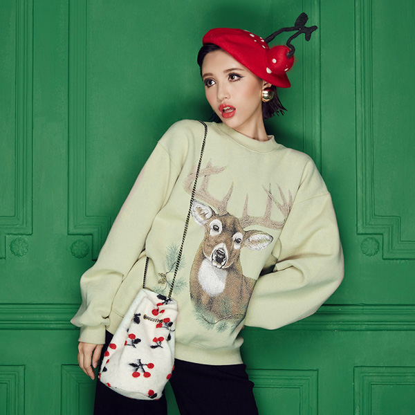 兩三事少年迷鹿之煩惱 寬松顯瘦衛(wèi)衣小鹿印花圓領(lǐng)套頭衛(wèi)衣女