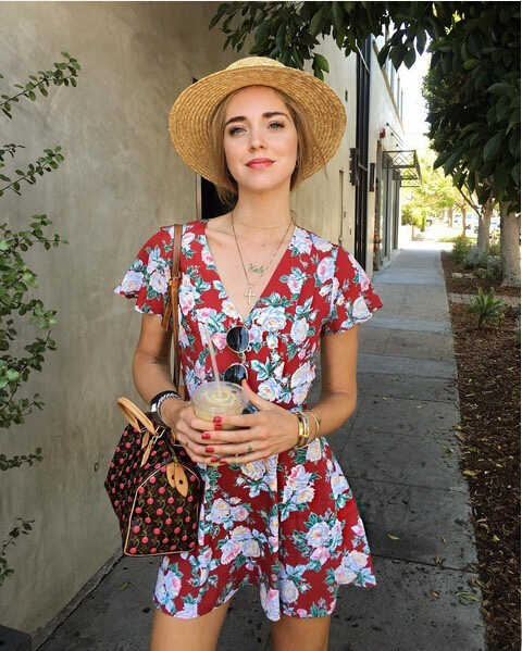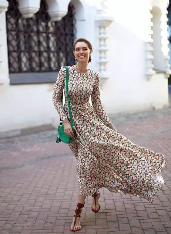 露肩印花裙搭配小白鞋舒適又有氣質(zhì)