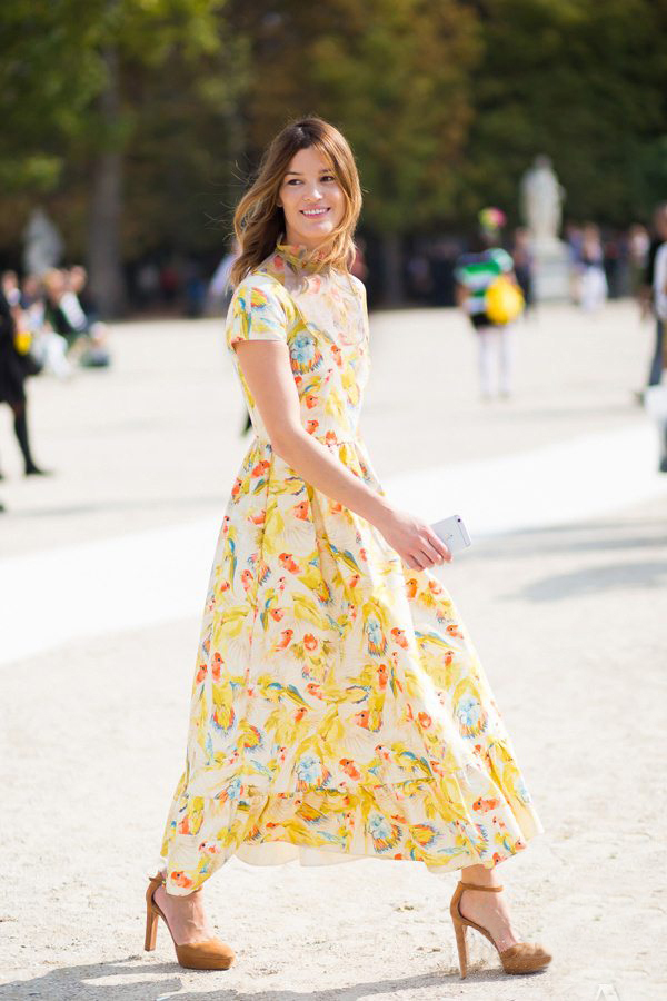 印花半裙搭配幫帶坡跟漁夫鞋充滿法式氣息