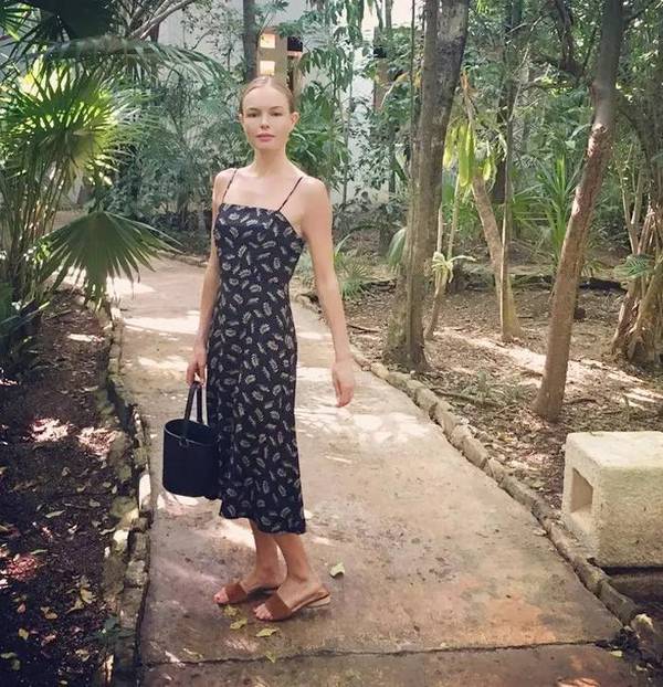 凱特·波茨沃斯演繹HVN吊帶裙搭配Paul Andrew涼拖