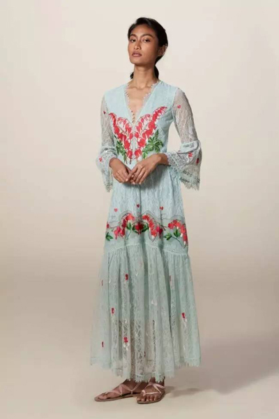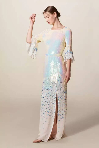 Temperley London,以英倫古典風(fēng)情以及精緻的手工印花聞名,也是媒體報(bào)導(dǎo)凱特王妃最愛的品牌之一。品牌設(shè)計(jì)師Alice Temperley對材質(zhì)、花紋的講究,創(chuàng)造出象徵性的波希米亞神秘風(fēng)格。這一次推出的 2018年早春系列,可見到以蕾絲花邊點(diǎn)綴時(shí)裝,印花圖案見有藥水瓶、青蛙、羽毛及水晶等,皆是以英國神話傳說作為靈感發(fā)想,為系列注入了一抹超現(xiàn)實(shí)的色彩。