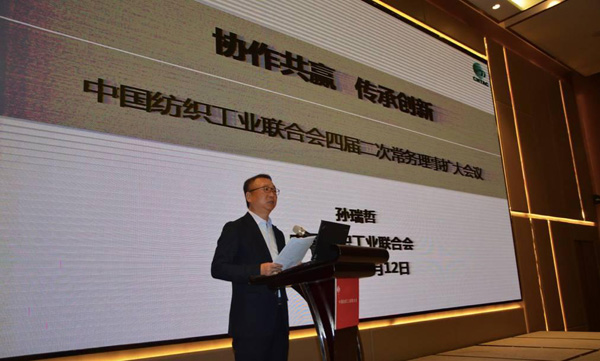 孫瑞哲列出中國紡織工業(yè)聯(lián)合會(huì)開展的工作:促進(jìn)中國紡織工業(yè)生產(chǎn)力體系全面升級;推動(dòng)行業(yè)用好國際國內(nèi)兩大市場、兩種資源;以行業(yè)擔(dān)當(dāng)助力可持續(xù)發(fā)展目標(biāo)的實(shí)現(xiàn)。