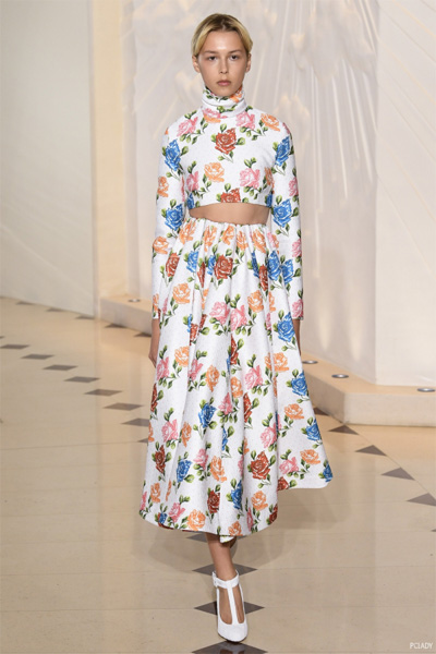 Emilia Wickstead在本次系列中所展示的印花恰如其分的將女性的柔美與大膽宣揚。一方面,在挺闊面料的基礎(chǔ)上加以花案,為內(nèi)斂的女性增添一份清新的優(yōu)雅。另一方面,采用透明材質(zhì)的朦朧感與排花相呼應(yīng),散發(fā)由內(nèi)而外的高級性感。二者都能為現(xiàn)代女性打造內(nèi)涵穿著的風(fēng)格特寫。