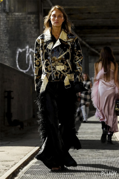 要說最具特點的大面積印花,那必然非Marques‘ Almeida莫屬。不同于浪漫柔情風(fēng)格,Marques‘ Almeida所展現(xiàn)的是帶有一絲英氣的藝術(shù)派路線。除了裙子與襯衫,還將印花賦予機車夾克與背心上,以此表達印花的趨勢不僅僅限于柔情,也代表著中性美。