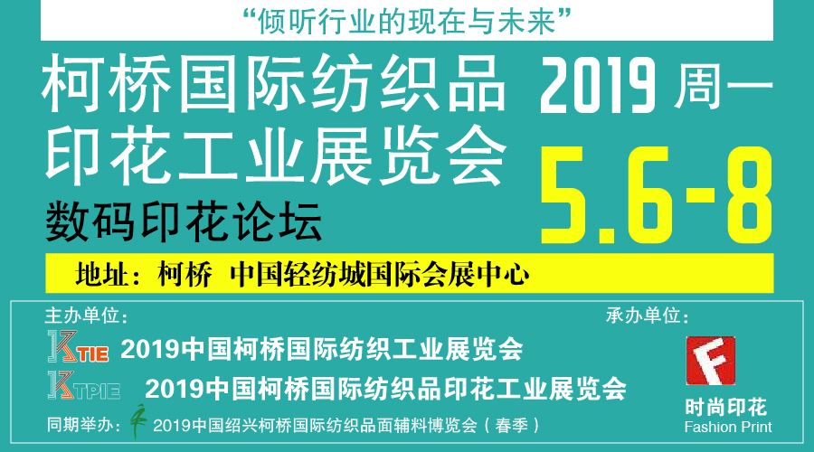 作為行業(yè)內(nèi)知名的紡織行業(yè)盛會(huì)2019中國(guó)柯橋國(guó)際紡織工業(yè)展覽會(huì)”及“2019中國(guó)柯橋國(guó)際紡織品印花工業(yè)展覽會(huì)”將攜手2019中國(guó)紹興柯橋國(guó)際紡織品面輔料博覽會(huì)(春季)于2019年5月6-8日在柯橋.輕紡城國(guó)際會(huì)展中心盛大舉行。