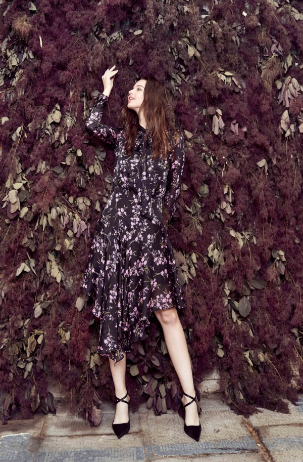 連衣裙總是最能展現(xiàn)女性特質(zhì)的時(shí)尚單品,而在蕭瑟的秋日,更需要為造型點(diǎn)綴些充滿高級(jí)質(zhì)感的“顏色”。在淺粉色印花構(gòu)筑的浪漫花園中,每片植物都似曾相識(shí),剪影是花的輪廓,亦是對(duì)于早秋的臨摹。鮮活而靈動(dòng)的剪裁勾勒出線條唯美的身姿,不規(guī)則裙擺隨著微風(fēng)恣意擺動(dòng),輕盈的材質(zhì)輕舞飛揚(yáng),優(yōu)雅的氣質(zhì)自然流露,仿佛世間所有的美好都在這個(gè)瞬間翩然而至。