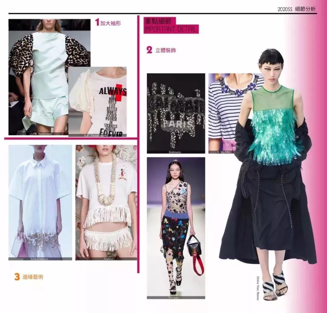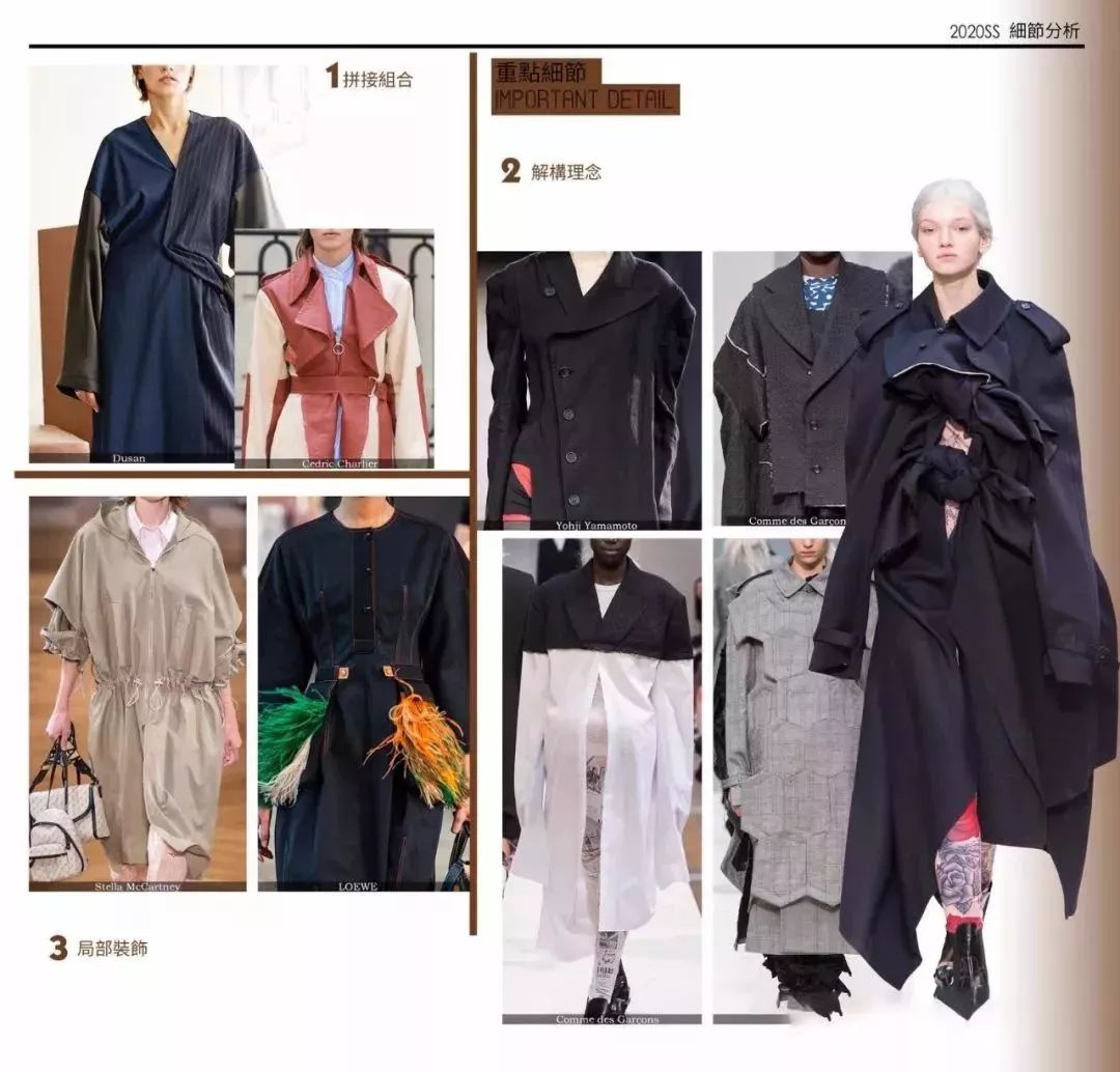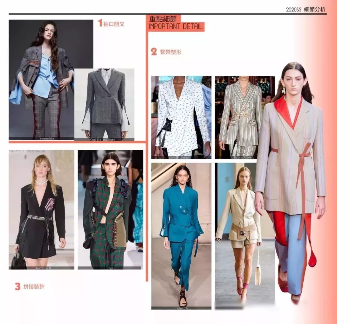 各種裝飾感細(xì)節(jié)更加具有高級(jí)感和定制精神,2020春夏時(shí)裝整體趨勢(shì)偏向休閑,結(jié)合結(jié)構(gòu)手法進(jìn)行細(xì)節(jié)上的重組,打破了趨于平面化的時(shí)裝設(shè)計(jì)。