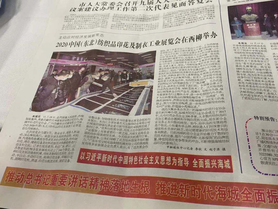 值得一提的是,此次浩瀚資訊能夠成功打入北方市場,尤其在東北留下深刻的影響力,還要再次感謝遼寧海城市西柳鎮(zhèn)人民政府、遼寧西柳服裝集團(tuán)、遼寧海城市印花行業(yè)協(xié)會(huì)等單位的大力支持。