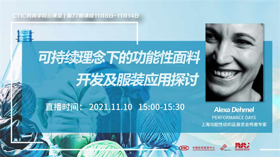 11月10日,F(xiàn)UNCTIONAL TEXTILES SHANGHAI BY PERFORMANCE DAYS上海功能性紡織品展覽會(huì)攜手“CTIC時(shí)尚學(xué)院云課堂”,帶來(lái)了《可持續(xù)理念下的功能性面料開(kāi)發(fā)及服裝應(yīng)用探討》的分享。