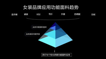 縱觀市場上女裝品牌,無一不具有自己的風格。這其中不僅包括面料的選擇、風格設計以及消費群體的態(tài)度,更多的是該品牌對消費市場的把握。王士如通過觀察調研市場上部分女裝品牌,發(fā)現(xiàn)女裝品牌在功能性面料的應用上已經(jīng)不局限在羽絨服、防曬服、外套等品類,而是拓展到褲裝、裙裝、襯衫等?梢哉f隨著女性消費者個性化、多元化的消費需求,女裝品牌可謂是絞盡腦汁找到一條突破之路。他表示,部分品牌將女裝個性化與流行性基因結合起來,在功能面料規(guī)劃上具有前瞻性與參考性。