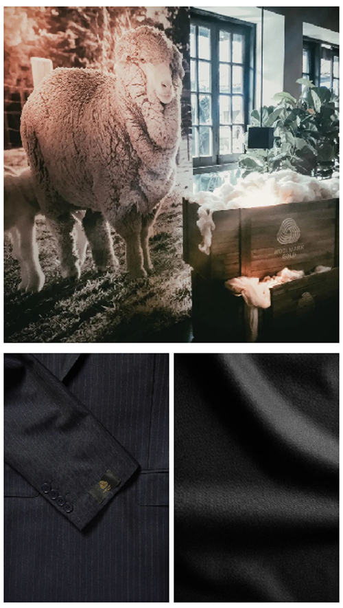金羊毛標志(Woolmark Gold)代表優(yōu)質(zhì)澳大利亞美麗諾羊毛為原料纖維、由精選的世界頂級面料及紗線制造商生產(chǎn)的上等面料及紗線,為高端定制及高奢男裝提供卓越品質(zhì)保證,長期以來頗受世界頂級設(shè)計師和消費者青睞。
