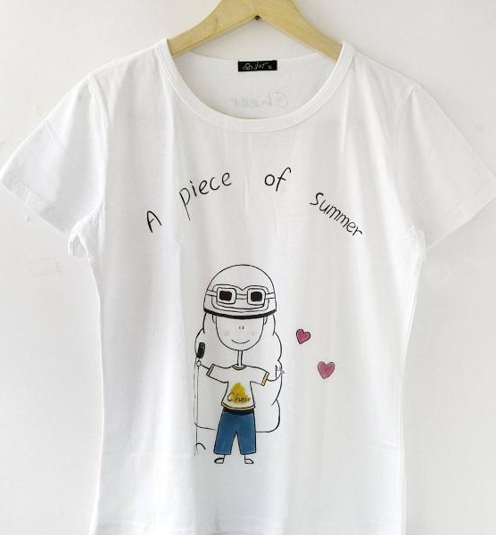 4.手繪印花就是人工用筆在T恤上繪畫,一般用的顏料是紡織染料和丙烯顏料,因?yàn)槭鞘止だL制,對(duì)繪制者的經(jīng)驗(yàn)和技術(shù)對(duì)整個(gè)印花的過程影響非常大,一旦出錯(cuò),不便更改,所以手繪T恤的顏料和手工成本非常高。