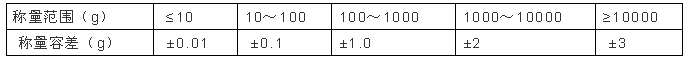 不同形式的筒管,其密封情況不同,因而有效流量率也不同,即使主泵吐出流量一致,其間差異也可達(dá)10%~40%,染液泄露程度不同,以致實際在紗線中循環(huán)的染液量不同,致使紗線上攜帶的染料量不同,因而造成深淺重現(xiàn)差的現(xiàn)象。不同形式和不同設(shè)計的筒管穿透率差異變化,也會使流量變化,隨之循環(huán)頻率和次數(shù)也變化,長絲染色缸差。不同染機(jī)其底碟、頂?shù)、頂鎖密封不一,泄漏不一,所以有效流量不同,缸差也無法控制。稱取染料的衡器也要有嚴(yán)格的使用選擇,不同稱量范圍應(yīng)使用不同精度的衡器,切忌用大秤稱小量。一般稱 量容差范圍如下表: