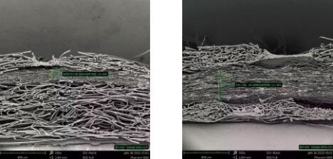 這兩種口罩之所以能夠有效防病毒,關(guān)鍵在于它們的核心過濾層均由一層熔噴非織造布構(gòu)成,該熔噴非織造布是一種以聚丙烯為材料,由許多縱橫交錯的纖維以隨機(jī)方向?qū)盈B而成的膜,纖維直徑范圍 在0.5~10 μm,掃描電鏡圖如下。