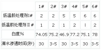 固定低溫前處理劑I#2g/L,低溫前處理劑II#2g/L,H202(100%)2g/L,溫度60℃×60min,浴比l:15