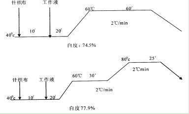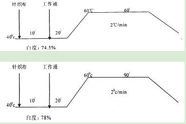 說明隨著溫度升高對白度有利,但考慮到節(jié)能還是60~Cx60min