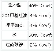 操作:先在苯乙烯(液體)中加入201甲基硅油,待全部澄清后再入平平加,混合后,再邊加水邊攪拌乳化,最后加入過硫酸銨。