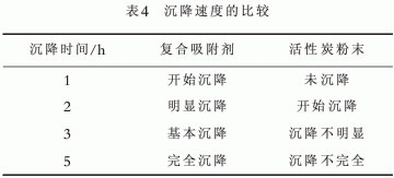 制備吸附劑和活性炭粉末對印染廢水脫色后,在溶液中的沉降隨時間的變化情況如表4所示。