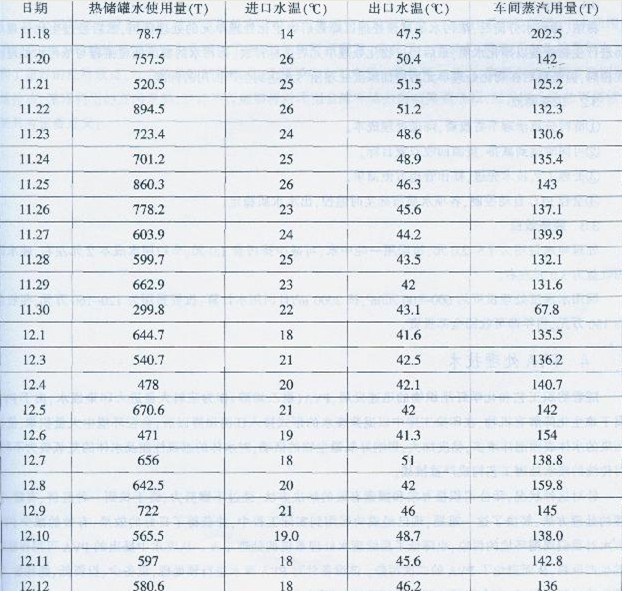 以孚日集團(tuán)股份有限公司毛巾二公司為例.下表所示為2007年11月18日至2007年12月12日換熱機(jī)組工作技術(shù)數(shù)據(jù)及車間用水量和蒸汽用量情況。