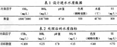 廢水的主要污染成分為: 活性染料、分散性染料、酸性染料、漿料、助劑等。因此確定設(shè)計(jì)進(jìn)水水質(zhì)( 見(jiàn)表1) 。