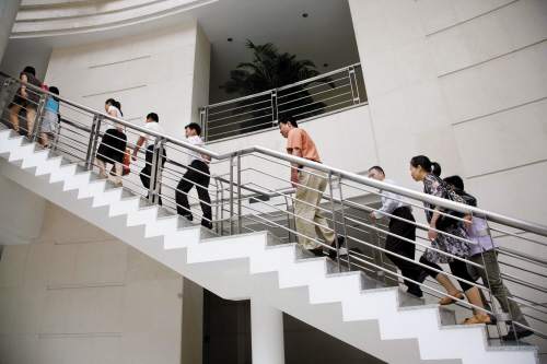 目前全國電梯年耗電量約300億度。通過較低樓層改走樓梯,多臺電梯在非繁忙時間只部分開啟等行動,大約可減少10%的電梯用電。