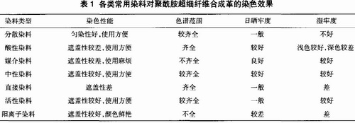 3.1各類染料對聚酰胺超細(xì)纖維合成革的染色效果