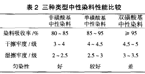 中性染料的染色效果較好,整體效果類似于酸性媒介染料,而且染色工藝簡單,可作為基布染色的主要染料品種。