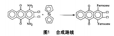 熱轉(zhuǎn)移印花是繼篩網(wǎng)印花和輥簡(jiǎn)印花后發(fā)展起來的一種新型印花方式。它具有層次豐富,表現(xiàn)力強(qiáng),能印制出照片效果的花紋圖案;工藝流程短,設(shè)備結(jié)構(gòu)比較簡(jiǎn)單,便于操作;最突出的優(yōu)點(diǎn)是幾乎沒有污水排放,從源頭節(jié)約了水資源。但是,現(xiàn)有的熱轉(zhuǎn)印黑色染料大多是混拼的,且不適合棉織物。本文意欲探索出一種適合于棉織物熱轉(zhuǎn)印的黑色染料。 本文的研究思路是:選用橙色光、耐光且安全的二茂鐵和發(fā)其補(bǔ)色的分散紫RL通過適宜的合成路線試制出所期望的黑色染料。 1實(shí)驗(yàn) 1.1主要儀器及試劑 Nicolet670型傅立葉變換顯微紅外拉曼聯(lián)用儀,Nicolet公司IBmeXIII型飛行時(shí)間質(zhì)譜儀,Bruker公司DHC2一l型壓燙機(jī),北京怡德精品有限公司I二茂鐵北京化學(xué)試劑公司;分散紫28,江蘇亞邦集團(tuán)。 1.2染料的合成
