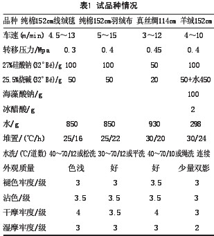 無(wú)錫市的色織廠引進(jìn)了該機(jī),從Dansk公司提供的400多個(gè)樣布看,無(wú)論在品質(zhì)或圖案質(zhì)量上,均達(dá)到國(guó)際一流水平。按照正常工藝要求在20℃以上的室溫下進(jìn)行轉(zhuǎn)移印花,并在40℃以上的溫濕狀態(tài)堆置。該廠試生產(chǎn)是在0℃左右進(jìn)行的,在一定程度上影響了產(chǎn)品質(zhì)量效果。試品種情況見(jiàn)表1