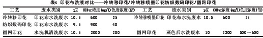 表2中就印花工藝對(duì)比,圓網(wǎng)印花工藝的水、電百米消耗量最高,萬(wàn)元產(chǎn)值的水、電消耗量更高,說(shuō)明其它三種印花產(chǎn)品附加值高。