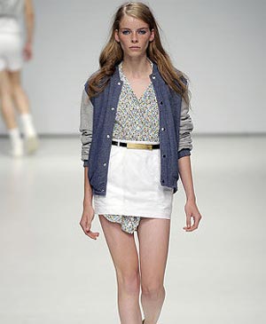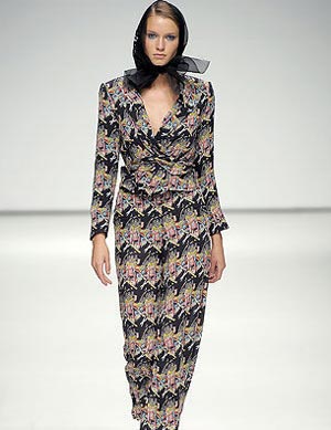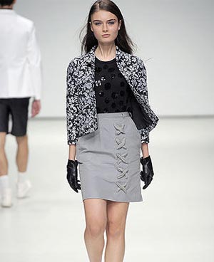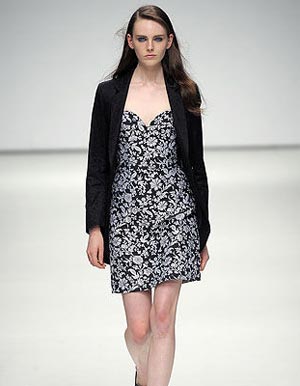 【集萃網(wǎng)觀察】黑白印花:女裝的白襯衫配黑馬甲,灰色運(yùn)動(dòng)衫,紅白條紋相間的T恤裙,襯衫裙,高腰的印花裙;男裝中的白西服配黑馬褲,純白的運(yùn)動(dòng)衫和運(yùn)動(dòng)褲,都在緊跟潮流,而印花似乎成為了這一季許多設(shè)計(jì)師搶手的寵兒,PeterJensen自然也不例外,色彩鮮明的各式印花點(diǎn)綴在黑色絲綢吊帶裙上,更顯女性嫵媚。