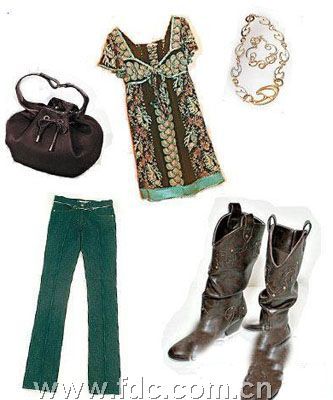 復古的印花連衣裙配上一條修身鉛筆褲品味升級,選擇一只系帶小手袋儼然一位貴族小姐。