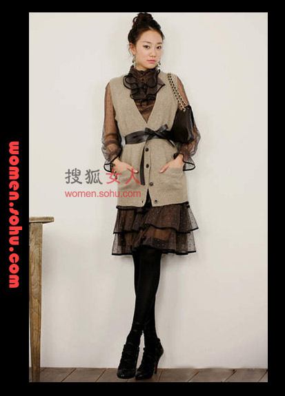 時(shí)尚解析:層疊的荷葉邊+柔和的淺藍(lán)色,讓你看上去像個(gè)粉嫩的公主,多褶的設(shè)計(jì)藏起身體贅肉,搭配牛仔褲再搭配一件超厚的大衣破除累贅感,圓頭的高跟鞋讓你更有女人味。