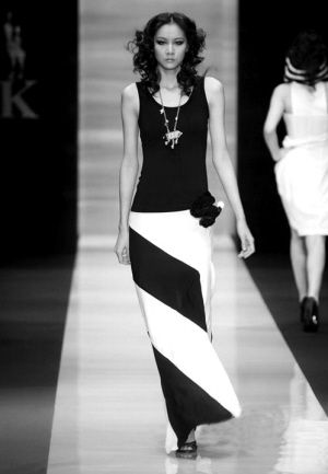 盡管,春夏服飾總是絢麗的色彩為主,但是黑與白這兩個(gè)經(jīng)典的色系無(wú)論哪個(gè)季節(jié)都不會(huì)從時(shí)尚界徹底消失。盡管在春光明媚的春夏,黑色和白色依然受寵愛(ài),與往年不同的是,今年的黑色與白色不再分開(kāi)出現(xiàn),而是攜手登場(chǎng)。在時(shí)裝秀上,你會(huì)感覺(jué)到設(shè)計(jì)師今年喜歡玩黑白對(duì)對(duì)碰的游戲,Moschino的黑白格紋褲裝,對(duì)比強(qiáng)烈的黑白上衣,蝴蝶結(jié)和菱格紋展現(xiàn)的中性魅力。在設(shè)計(jì)師陳非兒時(shí)裝發(fā)布會(huì)上,也能感覺(jué)到這種利用黑白兩色碰撞的表現(xiàn)手法,黑白相間的豎條紋抹胸裙、黑白相間的橫條紋背心……通過(guò)對(duì)比的手法,展現(xiàn)女性堅(jiān)強(qiáng)的一面。