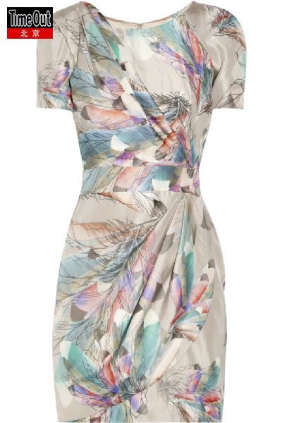 絲綢緞面材料和色調(diào)輕柔、看起來輕盈的羽毛圖案結(jié)合,可以大膽搭配色彩鮮亮的配飾。立體裁剪的腰部和板型,能擁有定制裙子般的完美身形。