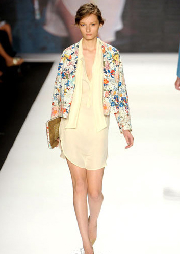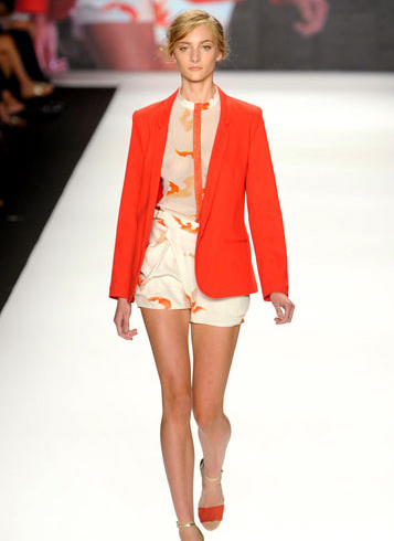 橙色小西服+圓領(lǐng)透視衫來源:新浪女性