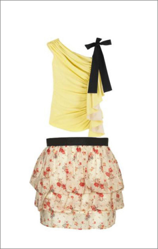 個(gè)性服飾搭配:蝴蝶結(jié)斜肩上衣+碎花層次浪漫短裙