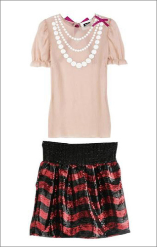 個(gè)性服飾搭配:印花圖案短袖+粉色下擺裙